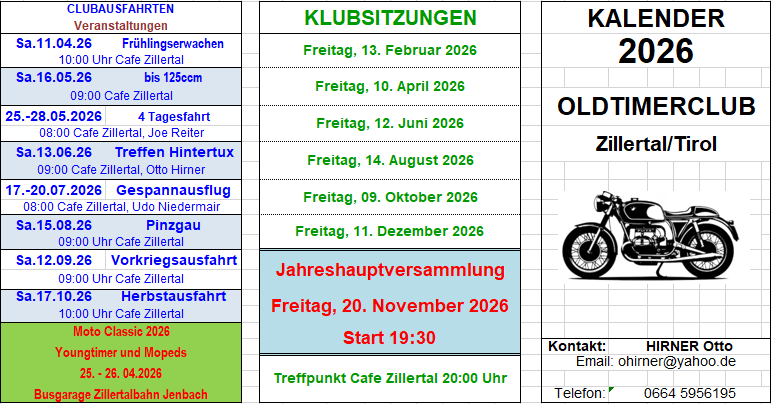 MOTO CLASSIC 2026 am 25. und 26. April 2026 in Jenbach